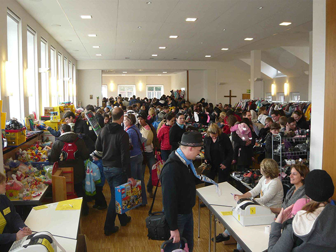 Dieser Gedanke steht hinter dem Kinderkleidermarkt, der zweimal jährlich (Frühjahr und Herbst) im Gemeindehaus der Kirche am Markt durchgeführt wird.