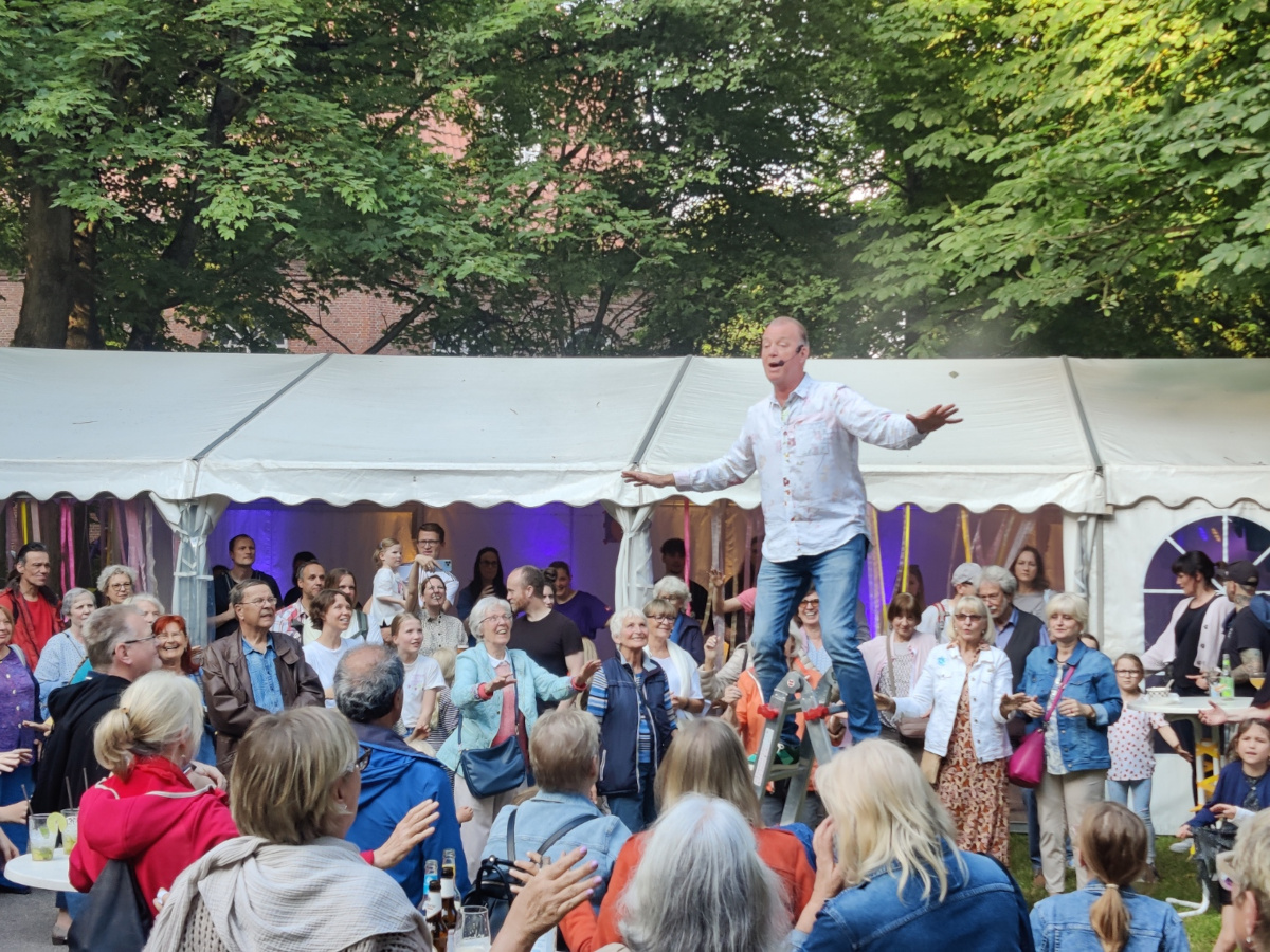Ein Fest für alle Generationen ist gelungen. Die Premiere von „Niendorf tanzt! Niendorfs größter Tanzparty“ Mitte Juni 2024 brachte Menschen aller Altersklassen zusammen und in Bewegung – von der Polonaise bis zum Headbanging. Die schöne Atmosphäre hinter der Barockkirche am Markt und das herrliche Wetter taten ein Übriges.